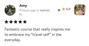 “I was looking for someone to help me incorporate my love of travel into my current life. I knew I wanted to make a big change but didn’t know how or what I wanted to do. I was very confused and overwhelmed. This coaching program has helped me think outside of my comfort zone and consider all possibilities.