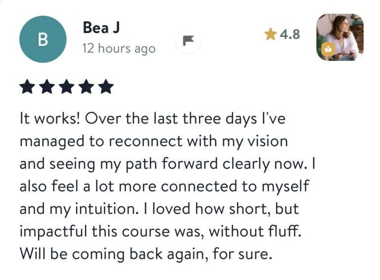 “I realised that mainly we have the same worries or challenges to face, so it was good to realise “I’m not the only one”. Thank you for creating this !! I felt a very powerful energy!!!”