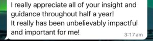 “I wanted to thank you again for the roadmap and your time. It really is enlightening, and I enjoyed it so much.”